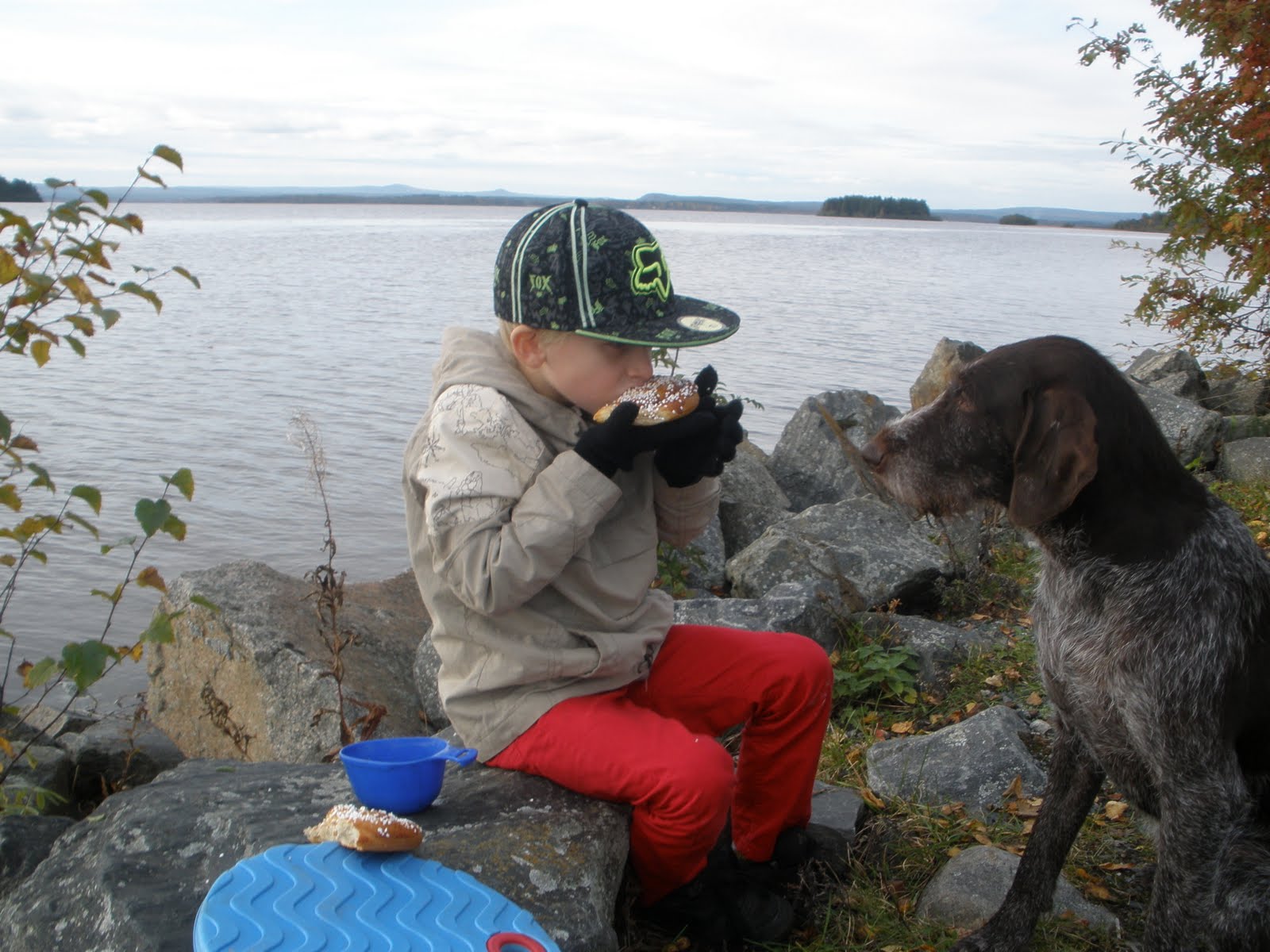 Vilken härlig helg vi har haft, som alltid avslutade vi helgen även denna gång med fika nere på kajen. Börjar bli en tradition för oss!!! Fast vi fick avsluta fikat tidigare för tim fick jätte ont i magen. Efter vi har kommit hem har han suttit på toan hela kvällen , så han är hemma i dag!! Mår mycket bättre , men vill ju inte att han far och smittar på skolan. Även fröken ville inte ha han till skolan heller. Johan haft en trevlig jakt helg med goda vänner!!! Så i dag blir det nog gåsjakt efter jobbet tror jag. Äntligen har vi hittat laddaren till Kameran , så nu ska jag börja ta lite kort....